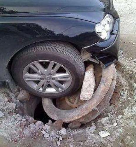 在马路上,遇到较多的是沙井盖,几乎一里一个盖,个个不相同。有的凸起,有的凹进。还有的直接没有盖,没有盖的沙井就像地雷,压上去,轮胎周边的包围直接废了。